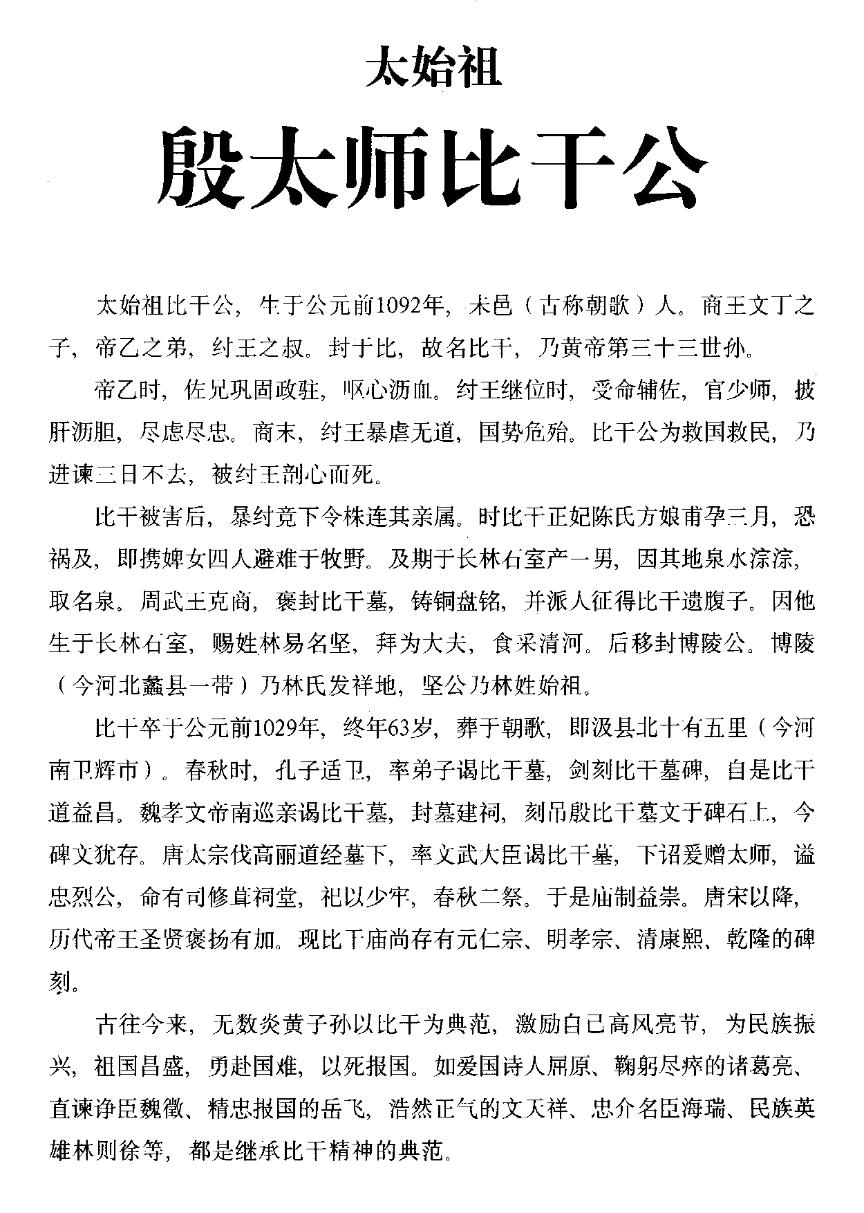 比干公系我林氏之太始祖也。李白有诗赞曰?: