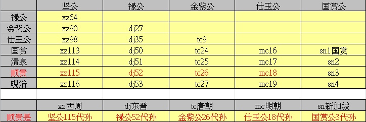 金紫公是西周坚公的90代孙,也是东晋禄公的27代孙。依此类推